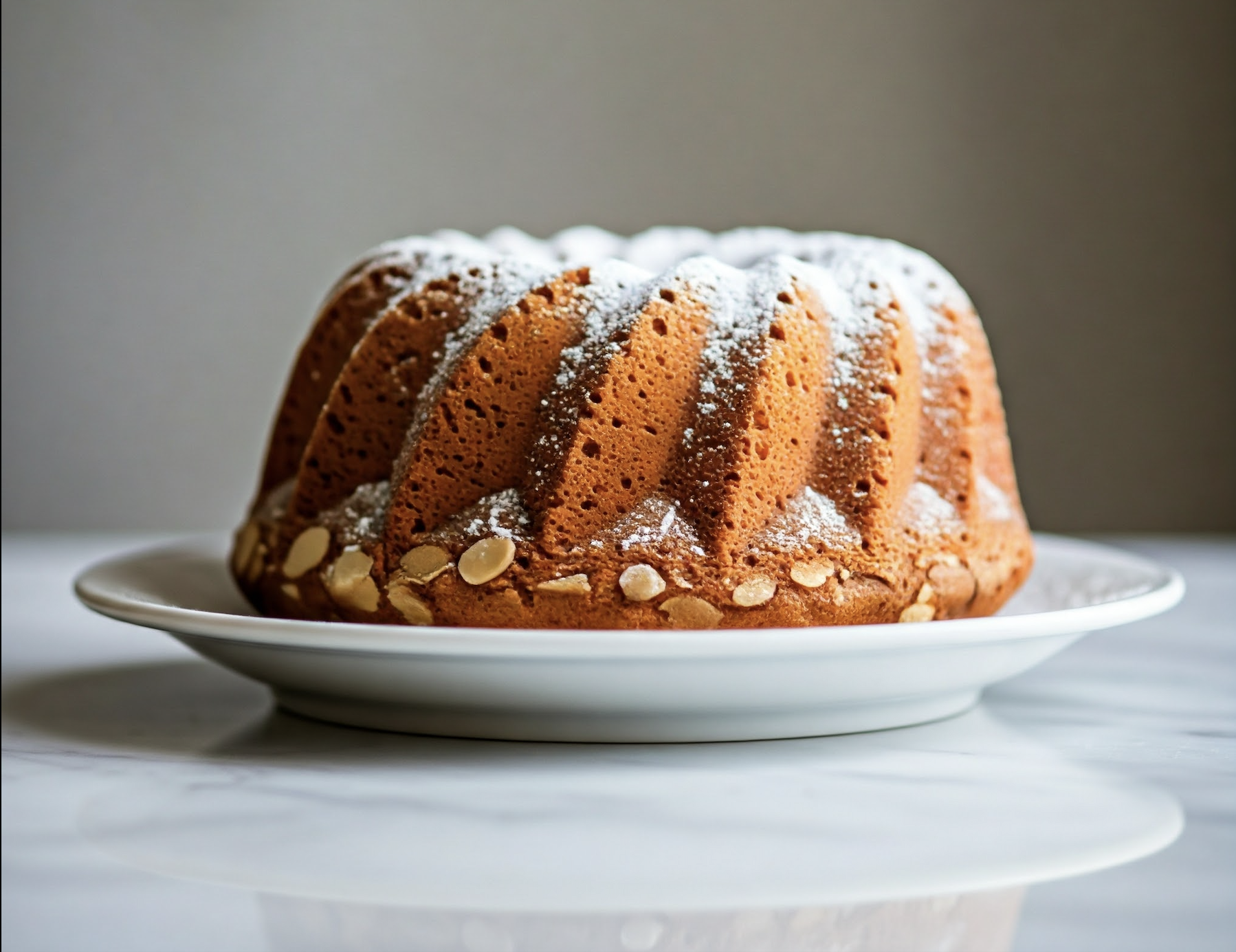 Indulge in our delectable Vanilla Bundt Cake, a perfect treat for any occasion. Moist, flavorful, and elegantly presented, our cake is sure to impress.Soft vanilla sponge made with real French 🇫🇷 butter 🧈 , bundt shaped, garnished with almonds and icing sugar.